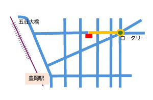 豊岡寿町8番26号 豊岡ロータリーから五荘大橋(南詰)方面、最初の信号の先、左側です。8台程度の出入りのしやすい駐車場がございます。